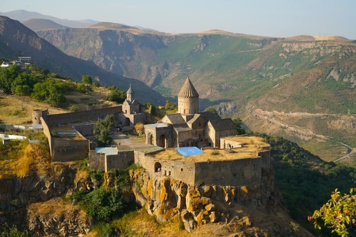 Morgens besuchen Sie das Dorf Chndsoresk, unterhalb von welchem sich ein malerisches Tal mit bizarren Felsformationen und zahlreichen, von Menschenhand geschaffenen Höhlen befindet, in denen im 17. Jh. mehr als 2.000 Einwohner mitsamt ihren Tieren lebten. Die an Fenstern und Türen bis heute erkennbaren Höhlen dienten außer als Wohnungen und Ställen auch als Lagerraum, Arbeitsstätten und Kirchen. Am frühen Nachmittag fahren Sie zu dem auf einer Höhe von 1.537 m gelegenen und zu den schönsten Klosteranlagen Armeniens gehörenden Kloster Tatev. Das zwischen dem 9. und 13. Jh. an der Stelle eines heidnischen Tempels erbaute, von einer Mauer umgebene Wehrkloster liegt auf einem Bergvorsprung und ist ein Meisterwerk der armenischen Architektur. Im Mittelalter war es das spirituelle und kulturelle Zentrum Armeniens mit bis zu 500 hier lebenden und arbeitenden Mönchen. Zum Kloster gehörte im 14. Jh. eine Universität, die als die beste Armeniens galt. Übernachtung in Goris im Hotel Mirhav. (F/-/-)