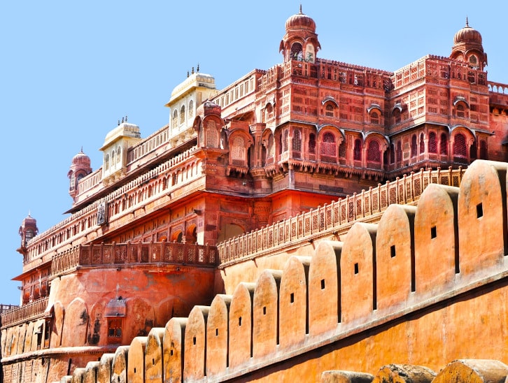 Erleben Sie Rajasthans Wüstenstaat mit prächtigen Palästen, imposanten Festungen und kunstvoll dekorierten Tempeln. Folgen Sie Karawanenrouten, besuchen Sie Pilgerstätten und genießen Sie den atemberaubenden Anblick des Taj Mahal bei Sonnenaufgang.